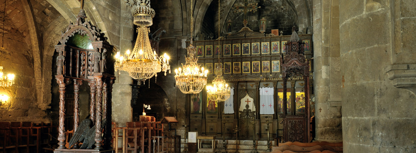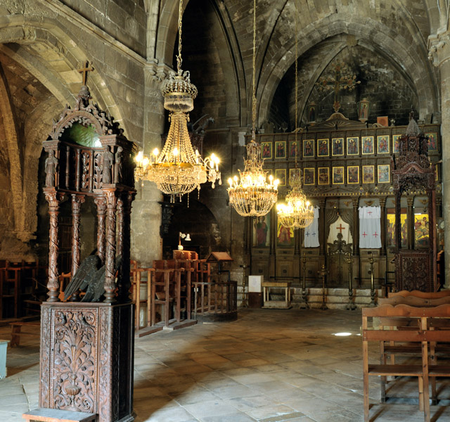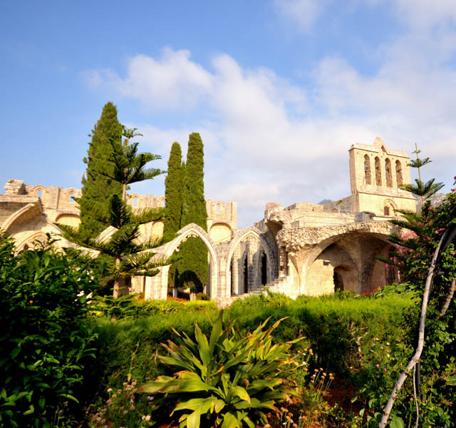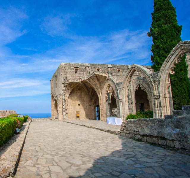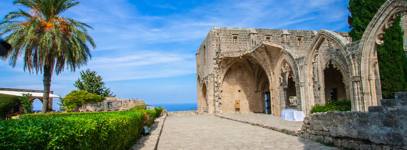 The gothic style abbey of Bellapais, built long before there was a surrounding village, has attracted visitors since the middle ages. They came as pilgrims seeking solace or forgiveness of sins; they came as followers of the arts when the Lusignan kings of Cyprus promoted the joys of poetry, music and literature; they came as artists in search of the perfect subject to paint and they came as writers to extol the many virtues of this incredibly tranquil building. It was in the late 12 th century when the mighty Saladin conquered Jerusalem and evicted the Augustinian friars. With the blessing of Aimery Lusignan (ruled 1194-1205), the monastic order came and settled in Cyprus. They searched for an ideal spot upon which to build a new abbey home and settled on a ridge in the foothills of the mountains above Kyrenia. They called their abbey “Our Blessed Lady of the Mountains”. There have been other names used during the ensuing centuries, including “L’Abbaye Blanche” (The White Abbey, so named after the White Cannons of S St. Norbert), and the “Abbaye de la Paix” from which came the Venetian corruption of Bellapaise. The abbey accrued great riches from the pilgrims that came to visit and pray for intercession through the auspices of the holy relics it had been endowed with. These included a piece of the True Cross that was given by a French knight returning from the crusades. However with wealth and success came pride and licentiousness and the abbey fell into disrepute so much so that by the time of the Genoese invasion and looting of the abbey treasures in the 14 th century there was little left of a functioning religious community. What does remain is one of the most beautiful Lusignan period buildings on the island. A walk through the whole of the abbey complex should not be hurried, it should be done at leisure allowing time to soak up the atmosphere, to pause in the cloisters and imagine the sight and sound of monks as they gently walked to prayers in the church or to meals in the great hall. Enter the Chapter House and examine the fancifully carved corbels that once supported the rib vaulting. Climb the well-worn stone steps that lead to the roof of the cloisters and gaze out across the blue Mediterranean. Sit inside the refectory or great hall and listen for the voice of the lone monk whose job it was at every meal time to read from the scriptures as his fellow brothers ate in silence. Beneath the refectory is the undercroft, a magnificent, cool storage area where the abbey victuals would have been stored and issued to the kitchens. The abbey church once Catholic, was handed over to the Orthodox Christians of Cyprus after the Ottoman conquest and since 1974 is no longer used for worship, it is now an icon museum. The whole site is looked after and administered by the TRNC Antiquities Department.