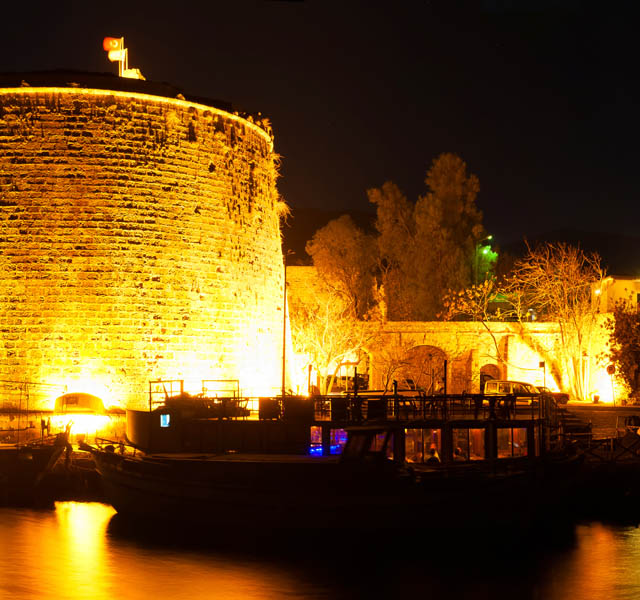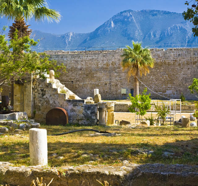 The town of Kyrenia was founded probably in the first millennium BC and was one of the early city kingdoms whose rulers governed the island. Its central position on the northern coastline was perfect for trading with the countries to the east and what is now Turkey to the north. With the southern coast of Anatolia only forty miles away cargo vessels could make the Mediterranean crossing frequently and an anchorage has existed here from earliest times. The picturesque harbour is described as one of the most beautiful in the world. Dominated by the castle, which in its present form was constructed during the Venetian period, it is quite simply the “Jewel in the Crown of North Cyprus”. The cafes and bars that line the harbour were once carob warehouses, and where trading vessels once moored there are now pleasure craft and gulets offering coastal cruises. At night when the lights twinkle on the water this is a magical place to sit and enjoy a leisurely dinner of mezze and locally caught fish accompanied by a traditi tional brandy sour. The development of the castle and town gathered momentum under the Roman Empire, when the harbour was protected by a shallow breakwater. Under Byzantine rule a fortress was built and the town was encircled with defensive walls. The remnants of Byzantine construction can be seen within the castle and the south-west tower remains virtually intact, though somewhat reduced in height, and can be found close to the town centre. When Richard the Lionheart conquered Cyprus, he leased the island to the Knights Templar, though their tenure was short. The realm was then given to the exiled Kings of Jerusalem. This ruling Lusignan family would control the land for a period of three hundred years during which time they carried out extensive building operations. One such was to increase the strength and size of the harbour fortress, turning it into part palace, part prison, part store house with wharf buildings and part safe haven into which the populace could retreat if under threat from an invading force. Externally, only the north-east tower of Lusignan construction is visible. The massive walls and bastions that now make up the outer defences were created under Venetian rule and have changed little in the ensuing four hundred years. The reason for the remarkably intact state of the castle is quite simple, when the Ottomans were conquering the land in 1570, Kyrenia capitulated without firing a shot, so the town, its citizens and the castle were spared. It is quite possible to spend a whole day in the castle, first seeking out the hidden Byzantine church that was originally outside the fortress walls and is now very firmly within them, then visit the rather unpleasant dungeons and torture chambers. There is the shipwreck museum containing the oldest wreck ever raised from the sea bed, and many rooms laid out in a series of tableaux representing Cyprus life and customs throughout the ages. Steps lead down into the towers guarding the corners of the fortress and these too contain effigies and weapons from the island’s defensive past. A walk along the top of the castle walls and to the battlements of the north-east tower gives an idea of what a Venetian soldier would have seen while on watch and from the north-west tower there is the most magnificent view of the harbour.