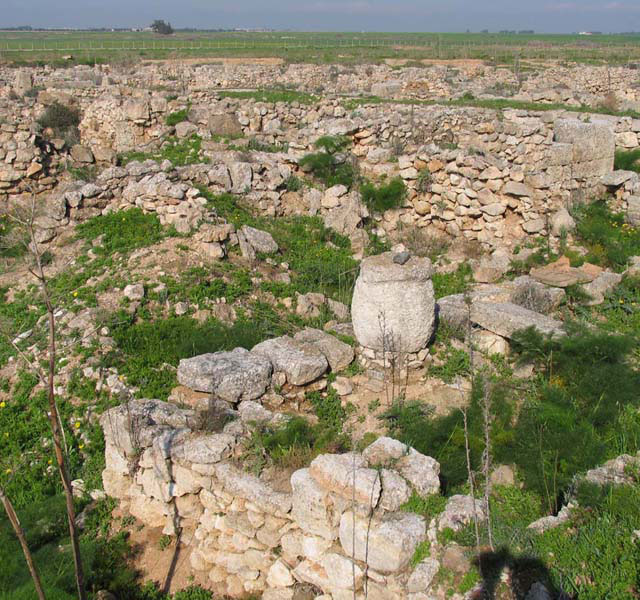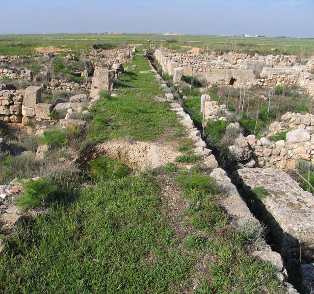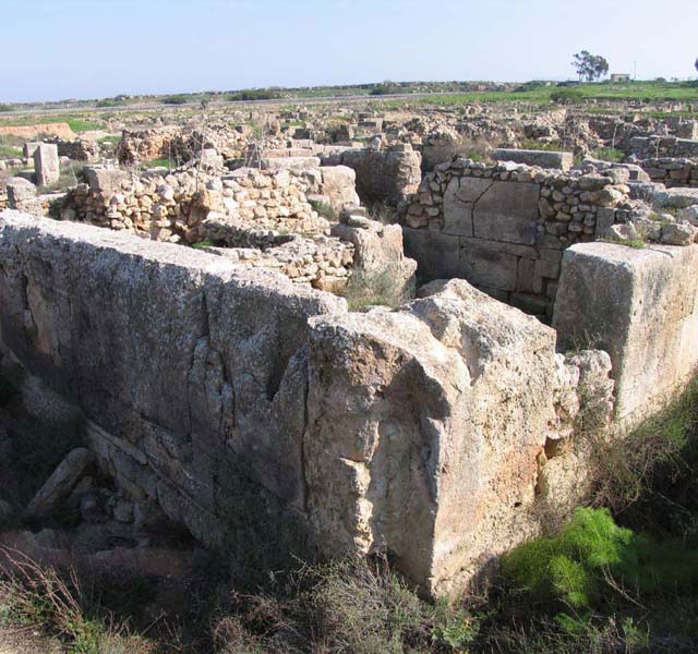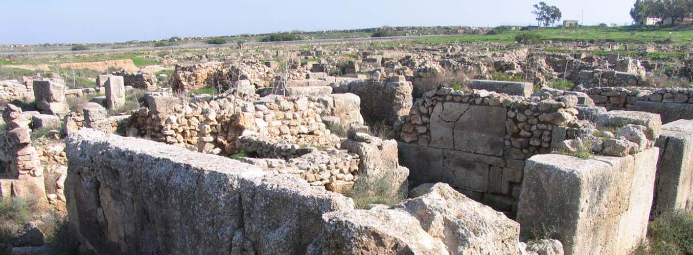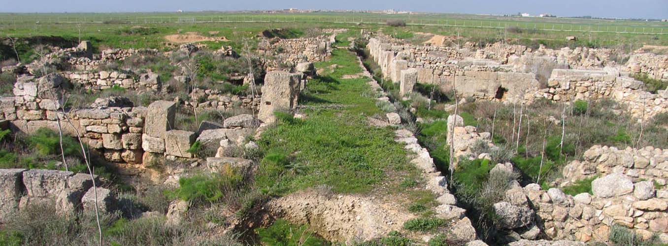 The foundations of Enkomi, which are all that remain of this Bronze Age city are found adjacent to St. Barnabas on the western edges of the Salamis necropolis. Discovered originally in 1896, the archaeologists first encountered burials and thought that this area was merely an extension of the burial ground for Salamis. It was not until the 1930’s that the Swedish expedition excavated more thoroughly and realised that this had once been a great city complex. During the excavations the outline of the city emerged to reveal the customs of the people. The burials that had been among the original finds were part of the ritual for the dead of the Mycenaean civilisation and similar evidence of this has been found in Mycenae and Crete. Diplomatic correspondence inscribed on cuneiform tablets that were discovered in Egypt refer to a wealthy city state called Alasia and it has been suggested that this state is Enkomi. However it is still only supposition and no positive verification has yet been proved. Early histo torical evidence shows that this city was renowned for its expertise in copper smelting which was then exported from the harbour on which it was built. In 2000 BC Enkomi was situated in the navigable River Pedios and flourished. There is no doubt that this was an extremely powerful city, remaining so until the river silted up and was no longer accessible by trading ship. At this time it is assumed the inhabitants moved their business and trade to Salamis.