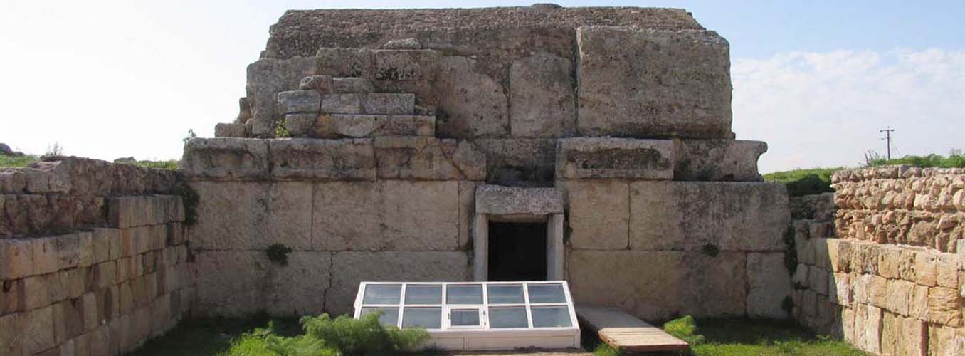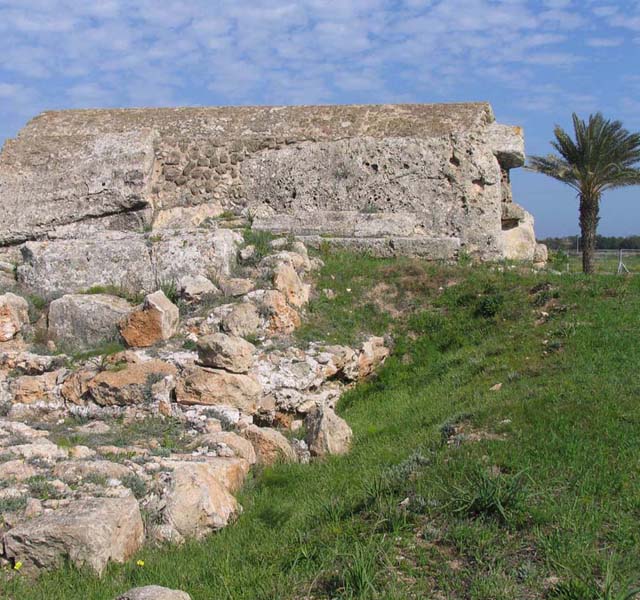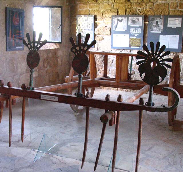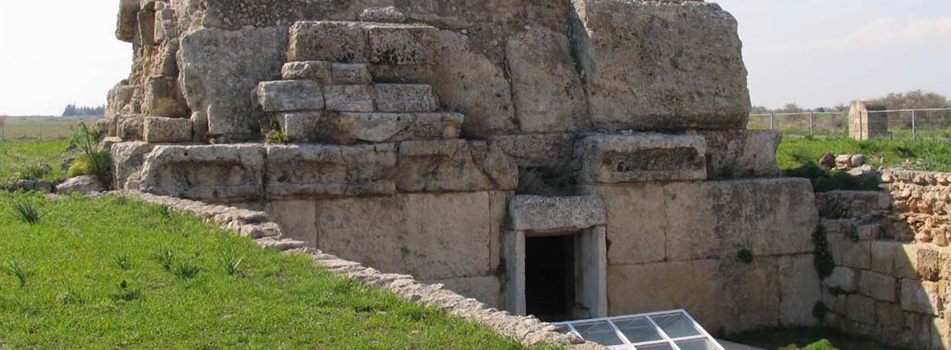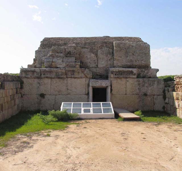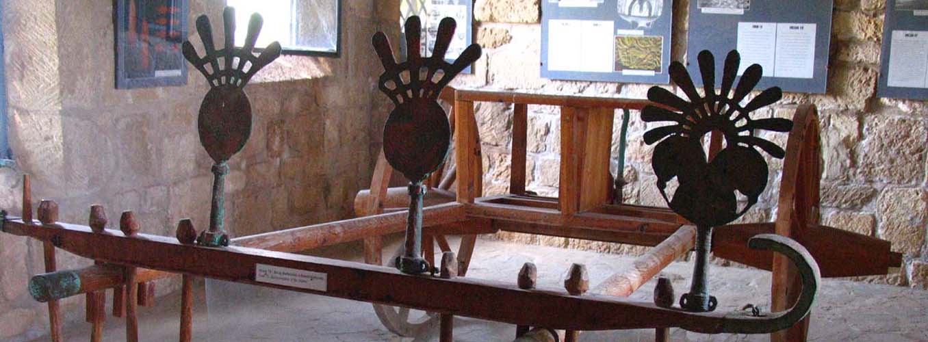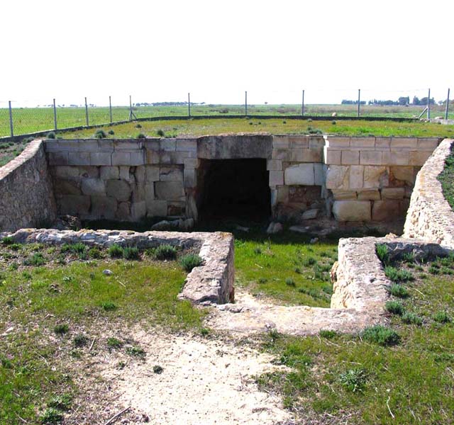 There is one area that contains the tombs of royal personages and high ranking inhabitants of Salamis, and a second area in which the ordinary citizens were buried. Only truly of interest to those who are fascinated by burial customs the Royal tombs area has a small museum displaying artefacts that were discovered on the site. These include parts of a royal throne and a facsimile of the funeral hearse for some long departed king. In two of the sloping entrances to the tombs there are the skeletons of the horses that having carried their royal master to his last resting place were slaughtered on site in order to continue with him into the next world. This was a grim ritual but it was the custom of the time. There is evidence that these tombs were in use over an extensive period probably in excess of 1,000 years with the bones of one incumbent being removed to make way for another. When the tombs were no longer utilised, burials took place on the same site but sarcophagi were placed above the rock cut tombs. The Cellarka are a set of much smaller tombs, cut into the rock and accessed down steep steps. They are carved out in a geometric pattern and each cluster of burial chambers is reached from a common flight of steps. Each body would probably have been placed in a terracotta coffin or pithos and the entrance would have been sealed by a stone. Once the body had decayed the bones were removed and the chamber reused. Excavations on the site continue.