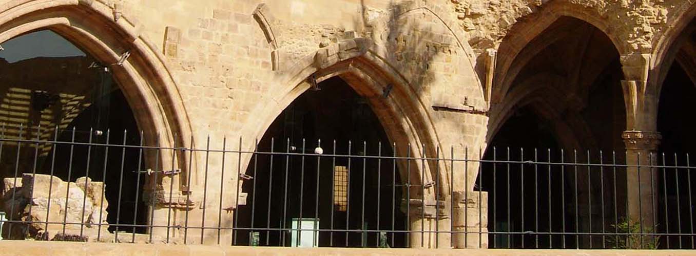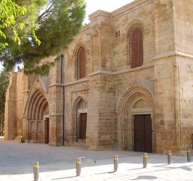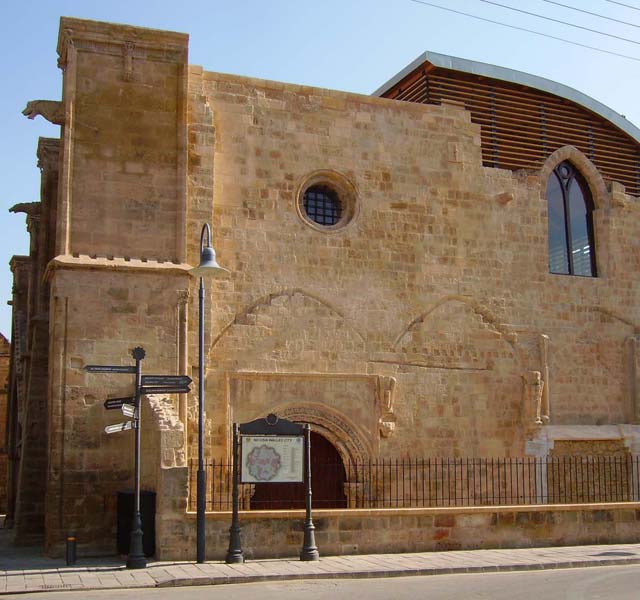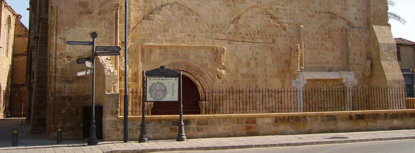 It is the amalgamation of two churches, one dedicated to St. Nicholas of the English and the other to The Blessed Virgin Mary. Look at the two north facing doors. The one to the east has a carving of St. Nicholas and the one to the west a carving of the dormition of the Blessed Virgin. At one time this was the Orthodox Metropolitan building for Nicosia and underwent a change of use when the Ottomans took control. It became known as “Bedestan” and has been used through different periods as a flour market, a textile warehouse and a general purpose covered market before falling into ruin and disuse. There are many other buildings all around the Cathedral precinct that once had an ecclesiastical purpose, among them the 14 th C <u>Chapter House</u> is used today as a restaurant and meeting place. Also in the area are the <u>Sultan’s Library</u> that was used to house the collection of books given by the Sultan Mahmoud II, (the building is currently empty and rarely open for viewing) and the <u>Lapidary Museum</u> at the e eastern side of the precinct where there is a collection of carved stones from a variety of ancient sites and long ruined buildings. Opening hours should coincide with normal museum times but tend to fluctuate.