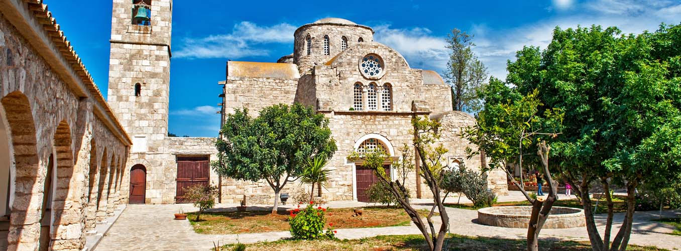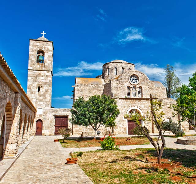St. Barnabas Monastery incorporated into the walls and pillars can be seen carved and decorated stonework from the original church. Bible references to Barnabas and Saul can be found in Acts, chapter 13which include the conversion to Christianity of the Roman governor, Sergius Paulus. But exactly why this site was chosen on which to build a church to Barnabas was all due to the dream of Archbishop Anthemios in which he saw the burial place of Barnabas close by under a carob tree. On waking he found the spot and dug to find a body holding an illuminated gospel. This discovery was considered proof enough that these were the earthly remains of the locally born Barnabas. The Emperor Zeno in Constantinople declared this find a miracle and granted the church of Cyprus self-governing status. There is a fresco inside the church which shows the dream, and discovery of the body and the presentation of the gospel to the Emperor. When the island was partitioned in 1974 and the last monastic inhabitants went to the south, the churc rch was closed and not opened again until 1991 when the Antiquities Department chose it as a venue to display a collection of icons and to utilise the domiciliary buildings to house a collection of Cypriot relics covering the 9,000 years of Cyprus’ history. A short distance from the church is the tomb of St. Barnabas with a 19 th C mausoleum chapel built over it. This is a popular pilgrimage site for all Cypriots especially on the Saint’s feast day of June 11 th .